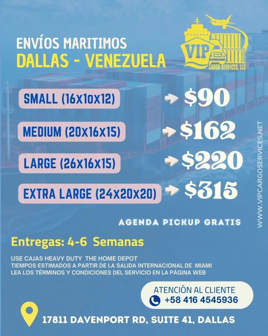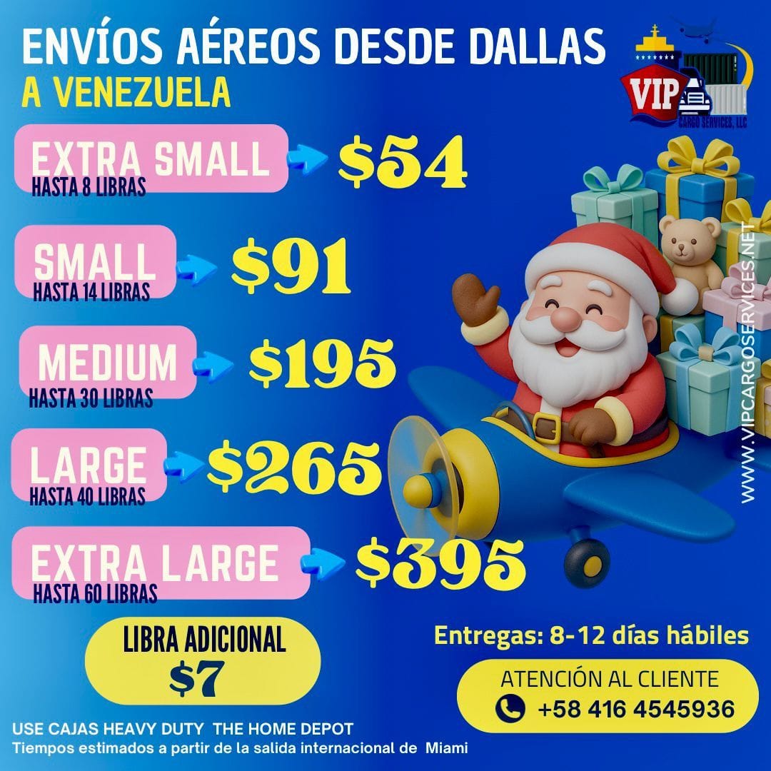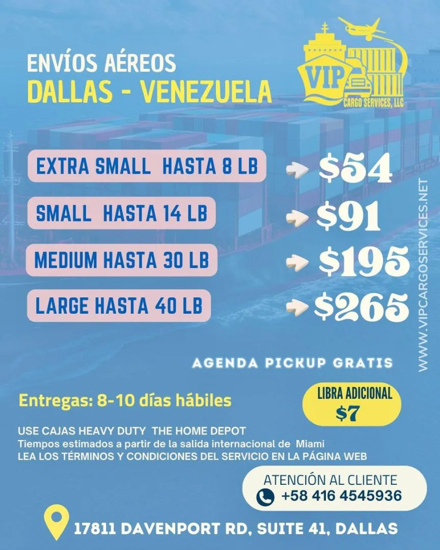 Con nuestros envíos aéreos a Venezuela, tus paquetes llegan en 1–2 semanas desde Dallas.